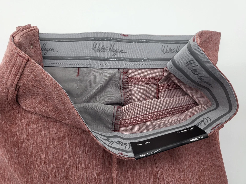Calça de golfe Walter Hagen masculina elástica Hydro-Dri, 5 bolsos, slim fit, vermelha
