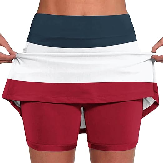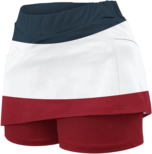 Modelo: Short Saia (Skort) em blocos de cores (Marinho, Branco e Bordô).