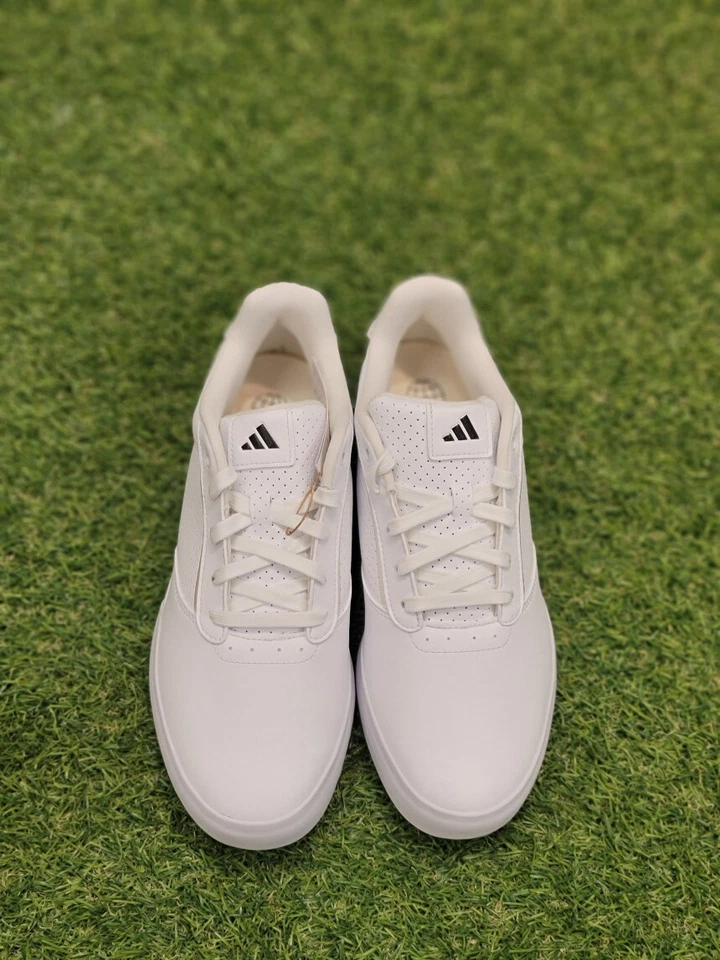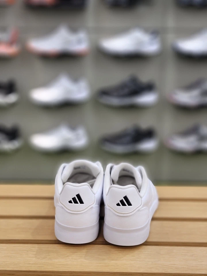 O Adidas Retrocross Spikeless redefine o conceito de calçado híbrido, trazendo uma silhueta atemporal inspirada nos tênis de skate e quadra para o contexto do golfe contemporâneo. Este modelo destaca-se pelo seu cabedal sintético premium de alta durabilidade, que conta com materiais reciclados em sua composição e oferece resistência à água para manter seus pés secos e confortáveis em gramados úmidos. Para garantir o máximo bem-estar durante a caminhada, o tênis possui um forro têxtil macio e um amortecimento leve que reduz a fadiga ao longo dos 18 buracos. O grande diferencial está no seu solado de borracha sem travas (spikeless), que utiliza um padrão de tração multidirecional projetado para maximizar a estabilidade e a aderência durante o swing, enquanto mantém a flexibilidade necessária para caminhar com naturalidade em superfícies rígidas fora do campo. Com um visual clean em branco total e o icônico logotipo da Adidas em destaque, o Retrocross é a peça estratégica para quem valoriza a consciência ambiental e um estilo autêntico que transita perfeitamente do fairway para o clubhouse com total confiança e performance.